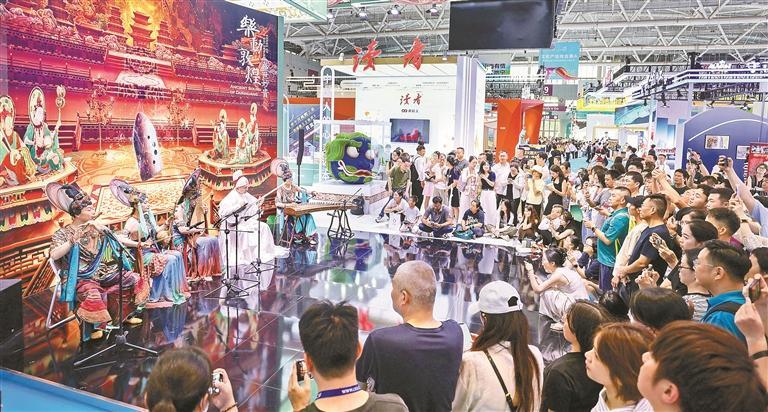 22日上午,随着琵琶的清音在申博 国际会展中心9号馆悠然响起,由甘肃演艺集团以古乐新编的形式创排的《乐动敦煌·盛世妙音》(国际巡演舞台版),在文博会甘肃馆启幕。这场以千年敦煌古乐为魂、现代艺术语言为形的沉浸式演出,为本届文博会奏响了“各美其美,美美与共”的文明交响。