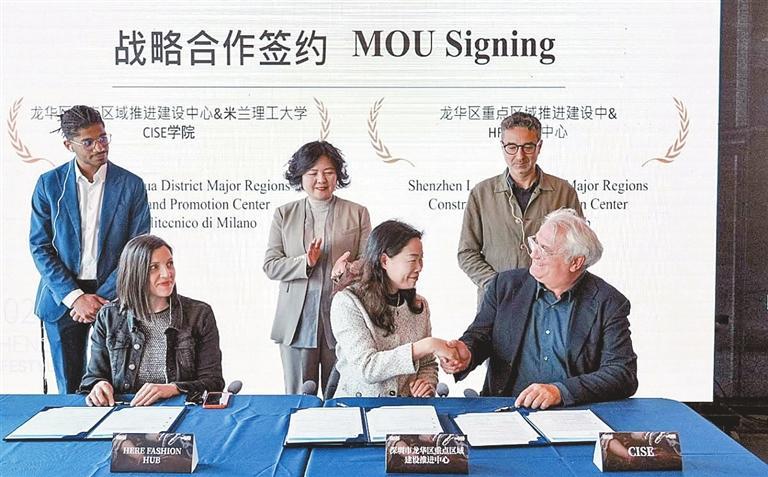 Among the signed projects, the Longhua District Key Area Construction Center will collaborate with the Construction Innovation and Sustainable Engineering Consortium (CISE) at Politecnico di Milano in the fields of fashion and design. Milan-based fashion sourcing company HERE Fashion Hub will establish an office in Dalang Fashion Town. Auratic Group will partner with Giovannoni Design to curate a crossover porcelain collection, while Eachway Fashion Group will team up with Wemanage Group to promote Chinese intangible cultural heritage on a global scale.
