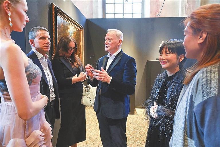 Giacomo Santucci (2nd R), the former president and CEO of Gucci and the chief curator of Lifestyle Week, gives a guided tour to the guests at the opening ceremony of the 2025 Shenzhen & Milan Lifestyle Week on April 9.