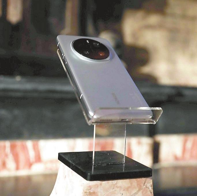 A smart phone produced by Shenzhen-based Honor is on display at the opening ceremony.