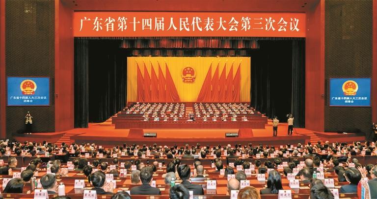一月十八日上午,广东省第十四届人民代表大会第三次会议圆满完成各项议程,在广州胜利闭幕。