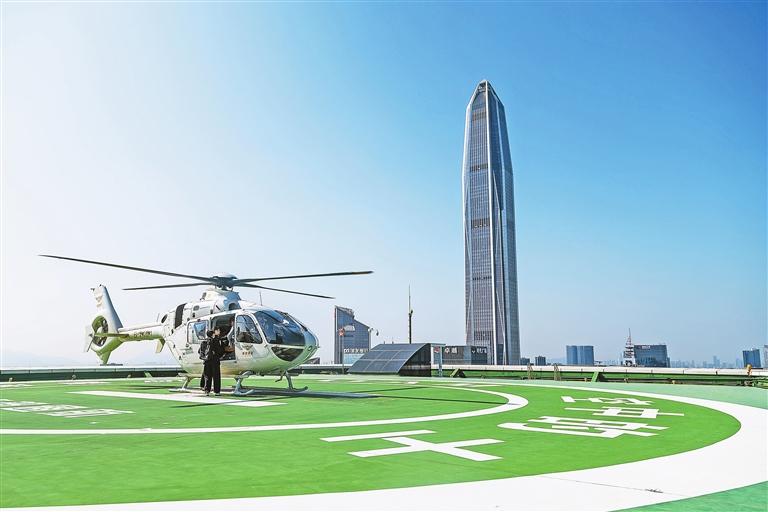 近日,一架东部通航AW139型直升机载着10名旅客,从申博 北站接驳机场腾空而起,经过仅仅8分钟,便降落在位于申博 湾的联想后海中心。从浙江搭高铁回深的旅客韩先生表示,“以往乘车需要40分钟以上,现在打个‘飞的’一眨眼工夫就到了,出行效率大大提升。”这一由深铁集团和东部通航联合推出的低空服务,是国内首个“低空+轨道”空铁联运项目,1小时内可到达大湾区90%以上地区。