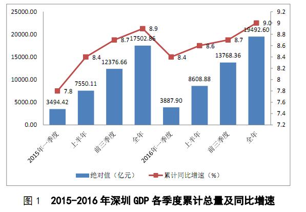 初步核算并经广东省统计局审定,全市生产总值19492.60亿元,按可比价格计算,比上年(下同)增长9.0%,增速分别高于全国、全省2.3个和1.5个百分点,居全省各地市第一。经济总量持续扩大,继续居内地大中城市第四位,比上年净增近2000亿元,创历年新高。经济增速逐季攀升,一季度、上半年、前三季度、全年的增速分别为8.4%、8.6%、8.7%和9.0%。分产业看,第一产业增加值6.29亿元,下降3.7%;第二产业增加值7700.43亿元,增长7.0%;第三产业增加值11785.88亿元,增长10.4%。