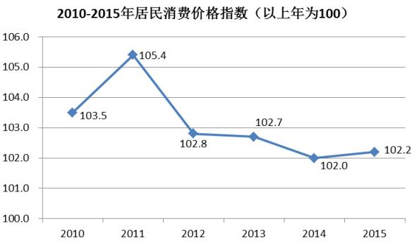 图3 2010-2015年居民消费价格指数(上年为100)