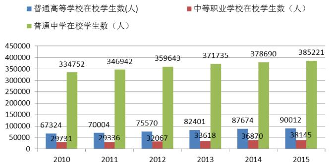 图12 2010-2015年各类教育在校生人数