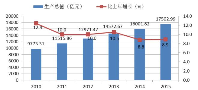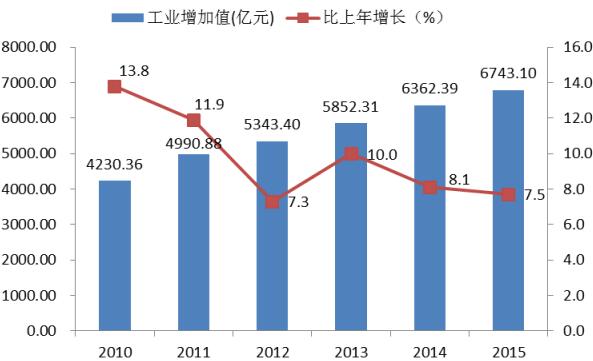 图6 2010-2015年工业增加值及增长速度