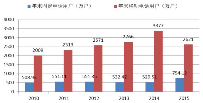 图11 2010-2015年年末电话用户数