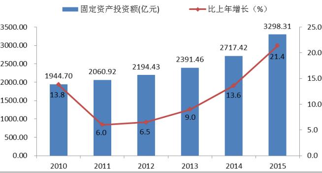 图8 2010-2015年固定资产投资及增长速度