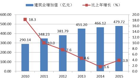 图7 2010-2015年建筑业增加值及增长速度