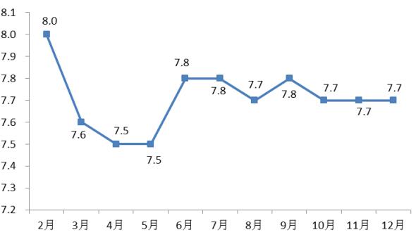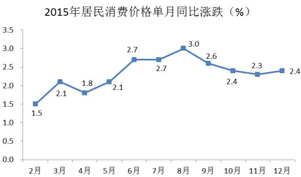 图2 2015年居民消费价格单月同比上涨幅度