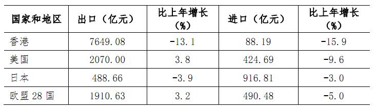 表12 2015年对主要国家和地区进出口总额及增长速度