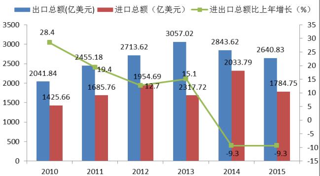 图10 2010-2015年进出口总额及增长速度