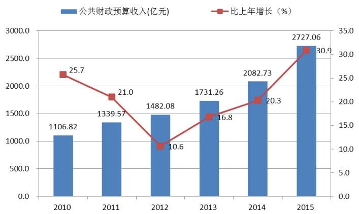 图4 2010-2015年公共财政预算收入及增长速度