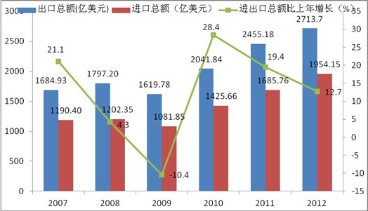 注:1.本公报所列2012年数据为初步统计数;统计图中2007-2011年数据为年报数。