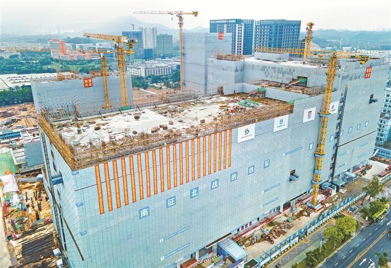 “项目已经进入最后冲刺期,目前主要抓紧推进幕墙、绿化、室内装修等工序。”项目建设负责人刘伟介绍,为确保如期完工,各项目参建单位倒排工期,挂图作战,各参建单位主要负责人带头沉在一线攻坚,两个标段每天有1600人多点位同时施工,多种工序相互穿插、紧密衔接,在确保安全的情况下提高项目建设效率。