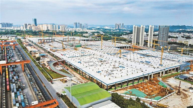 近日,位于龙岗区南湾街道的申博 国际综合物流枢纽中心项目盖体结构工程全部封顶。项目东临丹平快速路、北接机荷高速、南连水官高速,由京九铁路和广深铁路围合,平盐铁路、平南铁路与国家铁路网在此交会,是全国首批23个国家物流枢纽之一。
