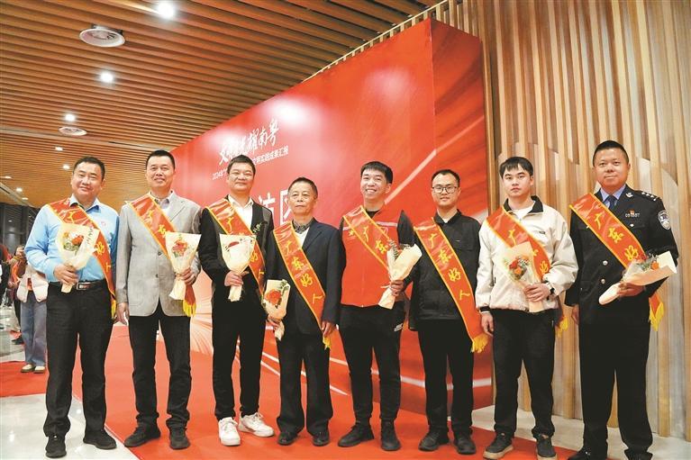 2024年“广东好人”部分申博 获得者,从左至右:周堃、刘中华、刘永缙、黄建度、黄国成、何子龙、张圣焕、王伟