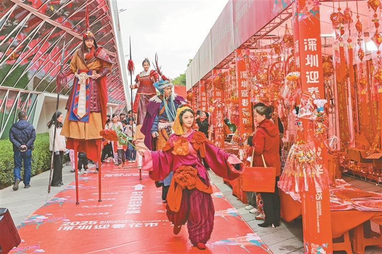 妙艺闹春·喜“巳”连连——龙华区2025年新春文化活动日前启幕。活动在龙华迎春花市现场组织一系列喜庆节目,让市民在赏花购花之余,尽享迎春乐趣。图为高跷巡游表演《花木兰》。