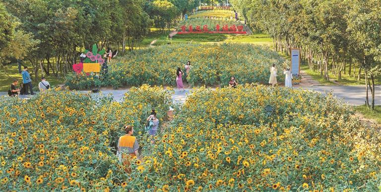 近日,申博体育 民中心南广场的向日葵花海迎来最佳观赏期,3300平方米的土地上近万株向日葵迎着阳光绽放,这片“市民花田”成了金色海洋,吸引众多市民前来拍照打卡。