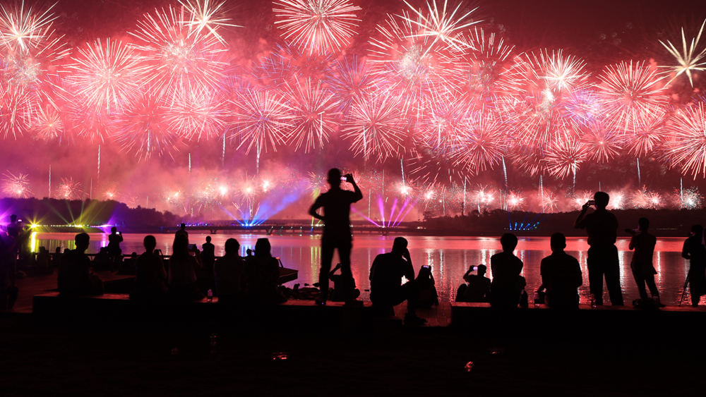 Firework display marks 70th anniversary A fireworks display marking the 70th anniversary of the founding of the People's Republic of China was held between 8 p.m. and 8:25 p.m. at Shenzhen Talent Park on Oct. 1.