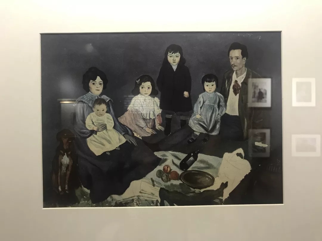A linocut "La Famille Soler" by Picasso which is a representative work of Picasso's Blue Period.