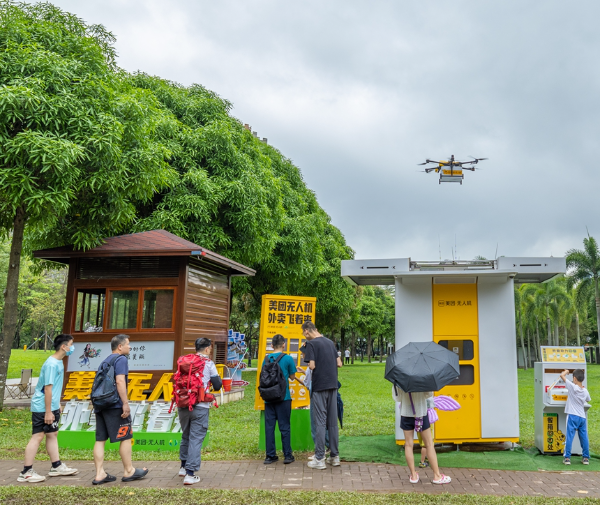 “以前在公园点外卖可不容易,定位难、走得远。现在有无人机送外卖,露营也能第一时间喝上鲜果茶!”市民杨女士说。