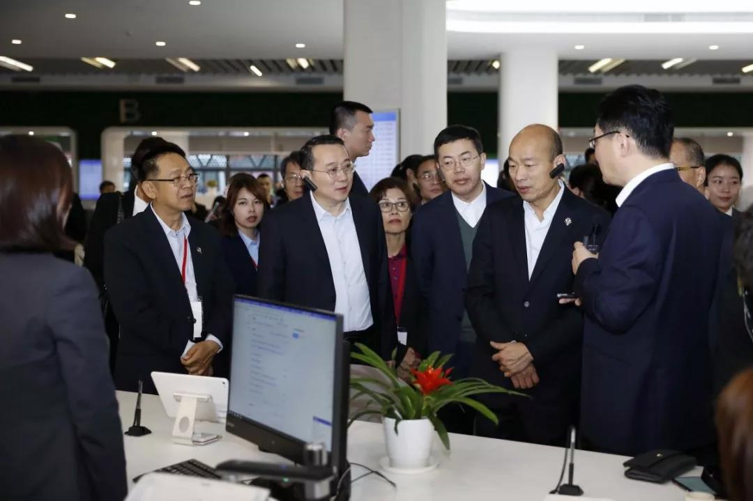 3月25日,韩国瑜一行前往坐落在美丽的申博 湾畔的南山区行政服务大厅参观。南山区委书记王强陪同。