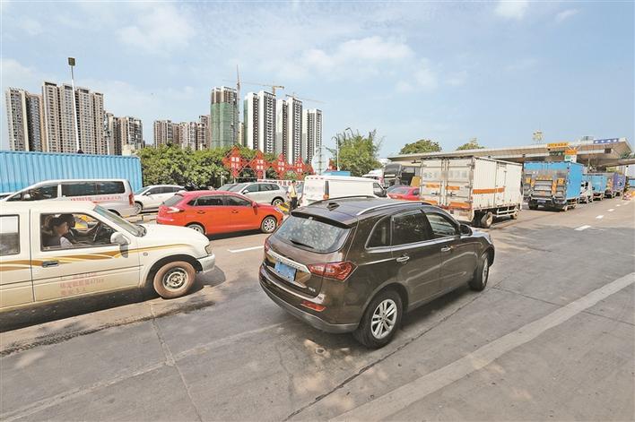 惠盐高速公路龙岗收费站出口入口,车多缓行。