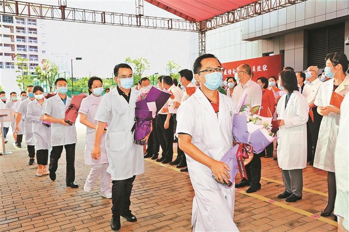 继3月31日申博 第一批78名医务人员圆满完成支援市三医院抗疫任务后,昨日,第二批54名医务支援人员也踏上归程。这意味着,全市132名支援市三医院医务人员已全部圆满完成任务。在欢送仪式上,副市长吴以环代表市委市政府对他们的无私付出表示感谢。