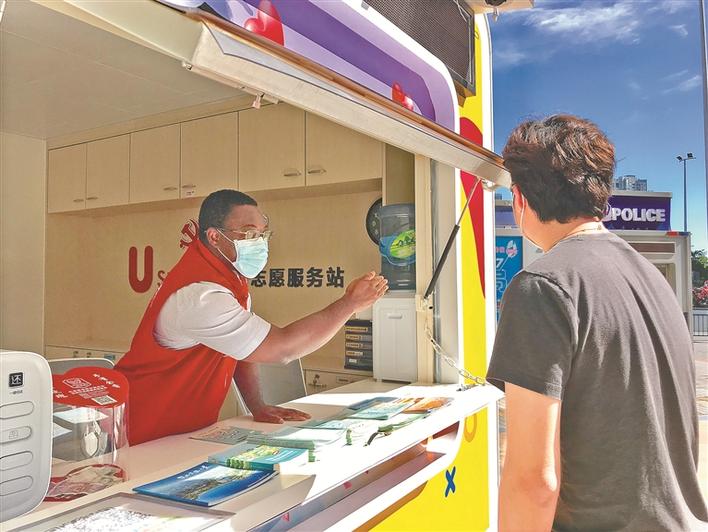 “下个路口右转,看见红绿灯再左拐就到了!”在宝安国际青年志愿服务U站前,不时有旅客前来问路,当发现为他们指路的“红马甲”是一名皮肤黝黑的“老外”时,总是忍不住多看几眼,打心里称赞道:“你中文说得真好!”