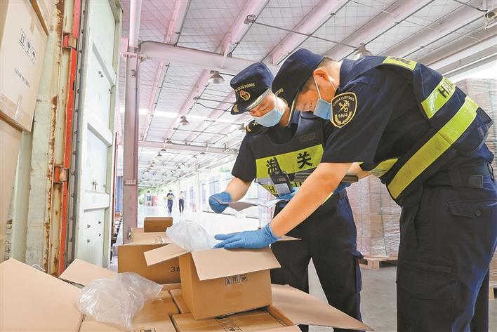 中外运平湖物流中心,海关人员正在检查货物。