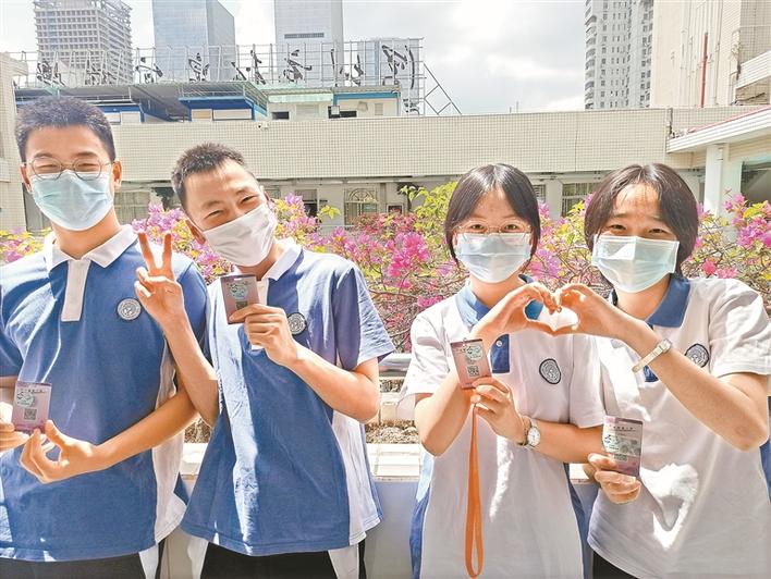 昨日,我市初三年级错峰返校,松泉实验学校为学生发放专属核酸检测贴。