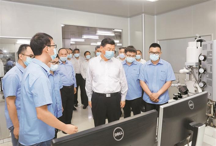 12日下午,习近平在潮州市潮州三环(集团)股份有限公司实验室,了解企业自主创新和产业升级等情况。
