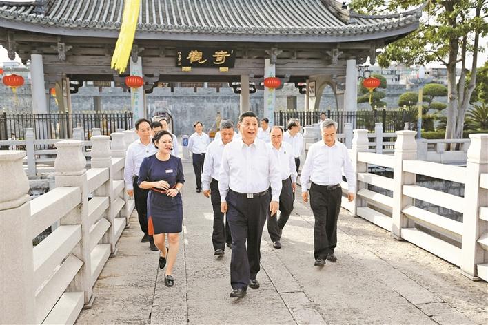 12日下午,习近平在潮州市察看广济桥,了解桥梁历史文化特色,听取修复保护情况介绍。