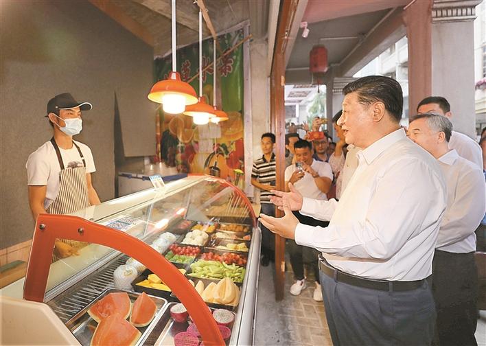 13日下午,习近平在汕头市小公园开埠区,同商铺店员亲切交流,了解复商复市和常态化疫情防控情况。