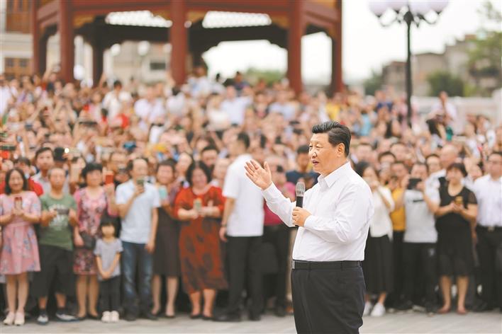 13日下午,习近平在汕头市小公园开埠区,同当地群众和游客亲切交流。
