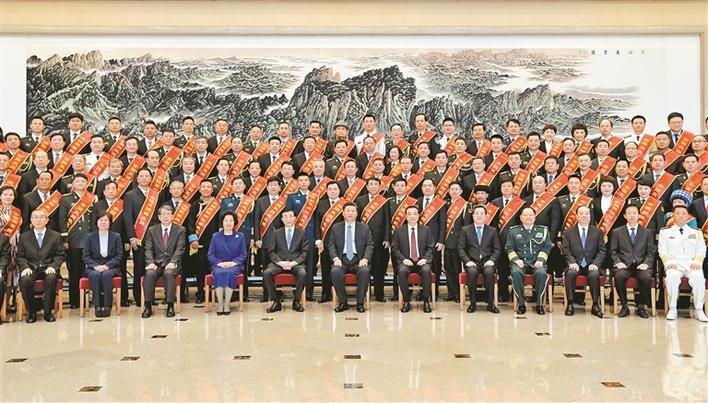 10月20日,党和国家领导人习近平、李克强、王沪宁等在北京会见全国双拥模范城(县)命名暨双拥模范单位和个人表彰大会代表。