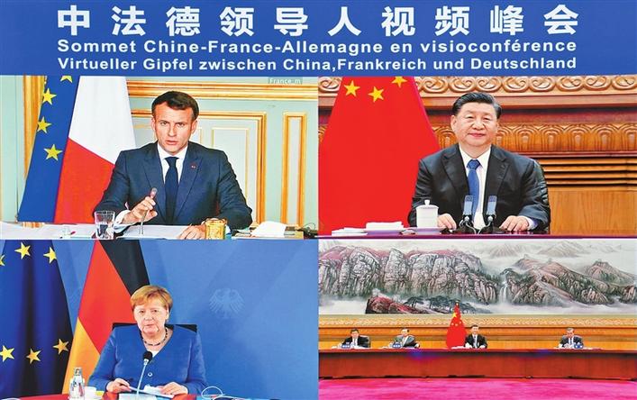 国家主席习近平5日晚在北京同法国总统马克龙、德国总理默克尔举行视频峰会。
