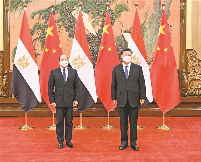 习近平指出,近年来中埃政治互信更加巩固,务实合作成果丰硕,团结抗疫亮点纷呈,中埃全面战略伙伴关系成为中国同阿拉伯、非洲、发展中国家团结合作、互利共赢的典范。当今世界正在经历百年未有之大变局,中埃两国在捍卫自身利益、追求共同发展、增进人民福祉、促进世界公平正义的事业中,理念相通,战略契合。双方应当携手努力,坚定朝着新时代构建中埃命运共同体的目标迈进。