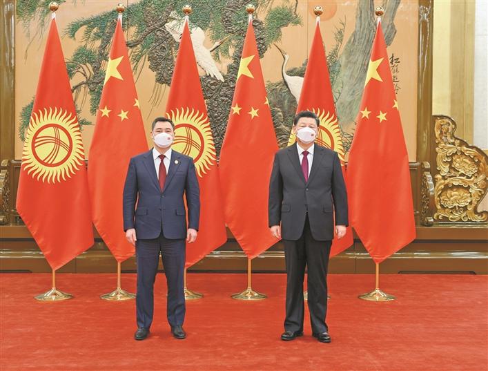 习近平强调,中吉两国要加强发展战略对接,中方愿扩大进口吉尔吉斯斯坦优质绿色农副产品,支持更多有实力的中国企业赴吉投资兴业,加快推进有关重点合作项目。充分利用两国边境疫情联防联控机制,提高口岸过货能力。中方支持建设中吉乌铁路,愿同吉方拓展医疗卫生、扶贫减贫、职业教育、妇女、青年等领域合作,尽快在吉建成鲁班工坊,帮助吉方培养更多专业技能人才。中方愿继续同吉方开展抗疫合作,为吉方提供更多新冠疫苗援助。中方愿同吉方全面提升安全合作水平,共同维护好两国及本地区安全稳定。加强在国际和地区事务中的协调合作,捍卫国际公平正义。