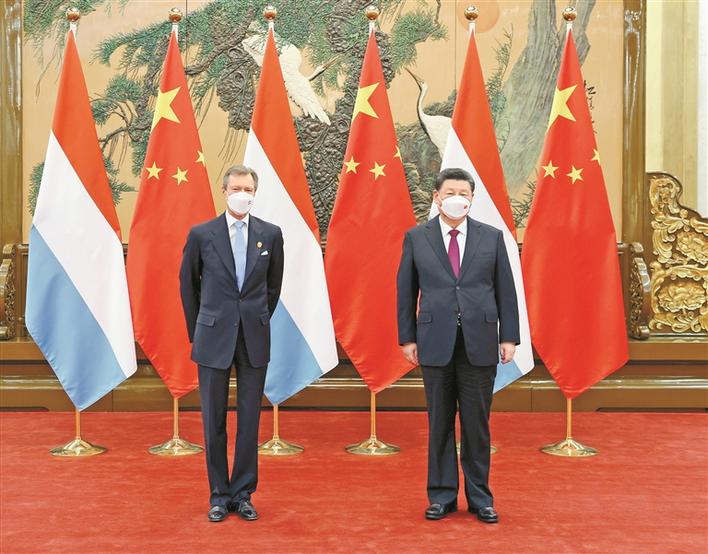 国家主席习近平6日下午在人民大会堂会见来华出席北京2022年冬奥会开幕式的卢森堡大公亨利。