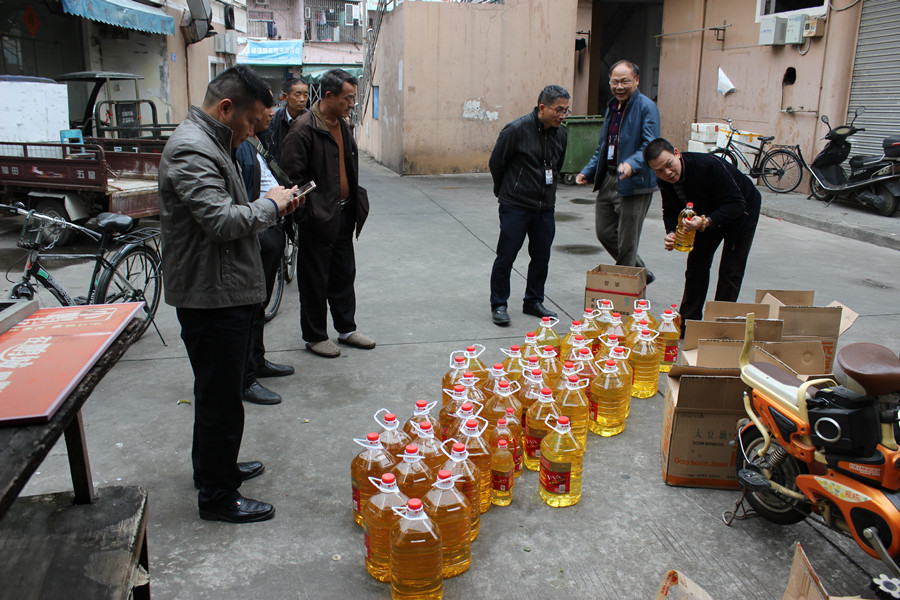 为了加强申博体育 大鹏新区食用油品市场监管力度,进一步做好辖区食品质量安全打假工作,维护广大消费者合法权益,2017年3月8日下午,大鹏新区打假办联合金龙鱼食用调和油的权利人,开展了食用油品市场检查行动。