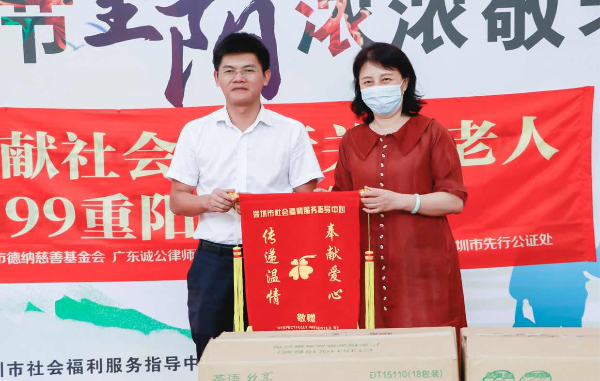 九九重阳节,浓浓敬老情。重阳节到来之际,申博体育 先行公证处联合龙华区法律援助中心、广东诚公律师事务所党委、广东德纳律师事务所党总支和申博体育 德纳慈善基金会,在申博体育 社会福利中心开展“99重阳公益行”捐赠献爱心活动。